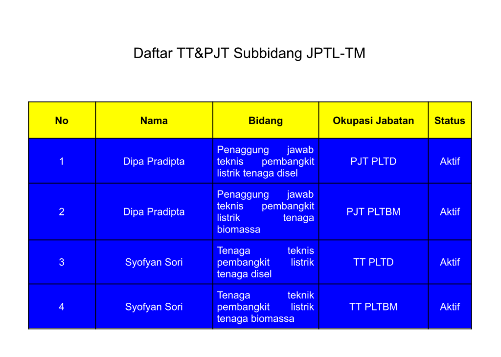 Penanggung Jawab Teknik & Tenaga Teknik Dari Semua Bidang dan SubBidang